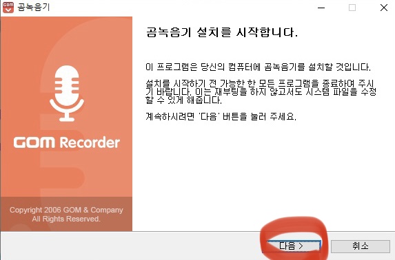 2. 곰녹음기 설치를 매우 간단한데 다운로드한 파일을 실행하여 설치를 한 뒤