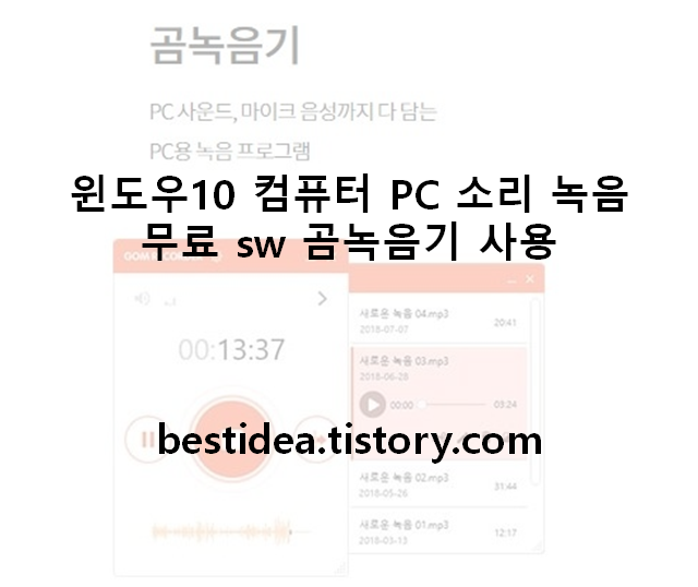 윈도우10 컴퓨터 PC 소리 녹음 - 무료 sw 곰녹음기 사용