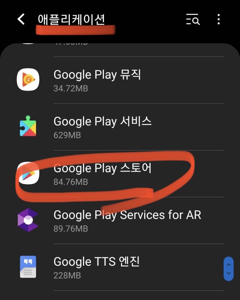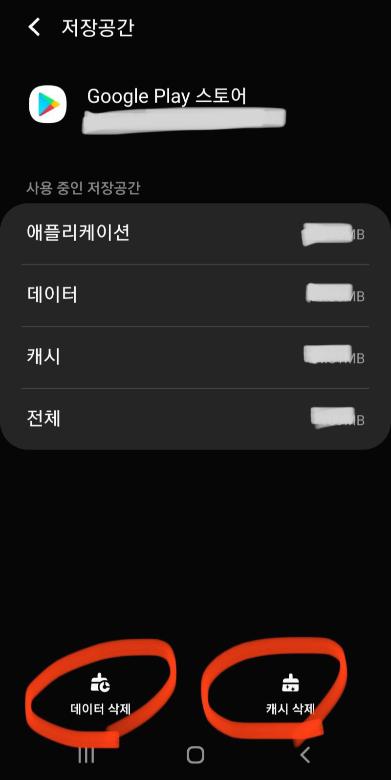 (2) 아래와 같이 Google Play 스토어 저장공간 설정 화면에서
