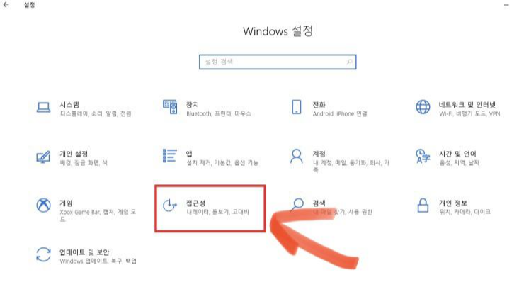 아래와 같은 설정 화면에 들어가면 접근성 항목이 있는데 "접근성"을 선택한다.