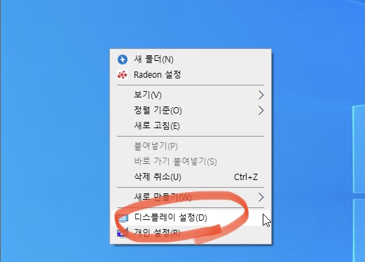 1. 윈도우에서 듀얼모니터 설정을 위해서는 바탕화면 상에서 아래와 같이 마우스 오른쪽 버튼 클릭을 한 다음 "디스플레이설정"을 선택해준다.