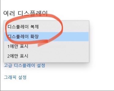 # "디스플레이 확장"은 하나의 화면을 분할해서 동시에 여러 화면이 나타나는데 쉽게 설명하면 긴 하나의 화면이 생긴다고 보면 된다.