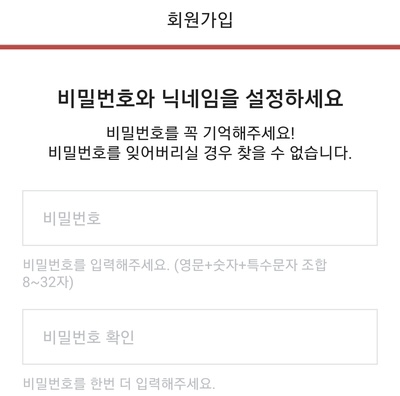 3. 블라인드 회원가입 - 인증 완료 후 비밀번호 및 닉네임 입력