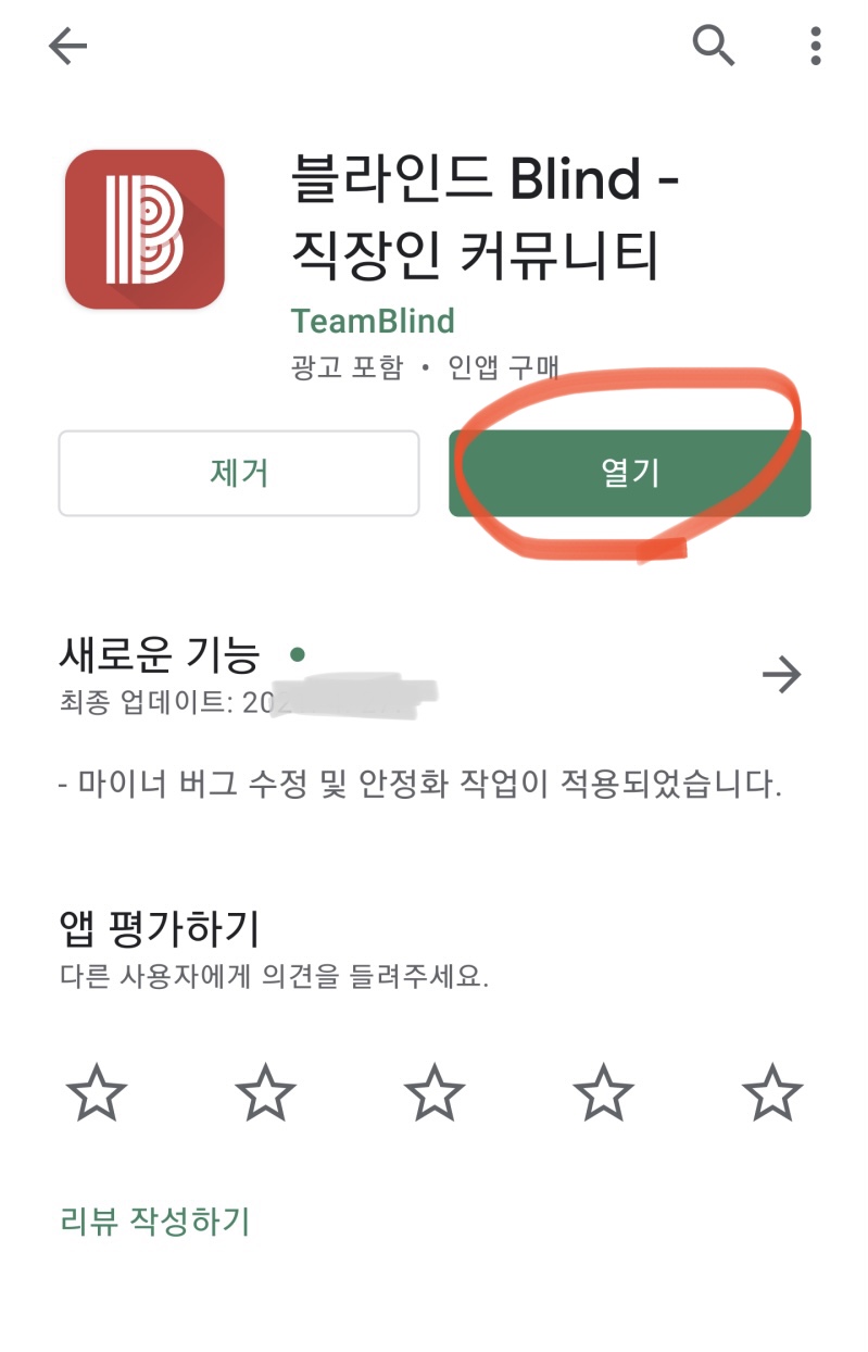 블라인드 Blind - 직장인 커뮤니티를 검색하여 다운로드 설치한다.