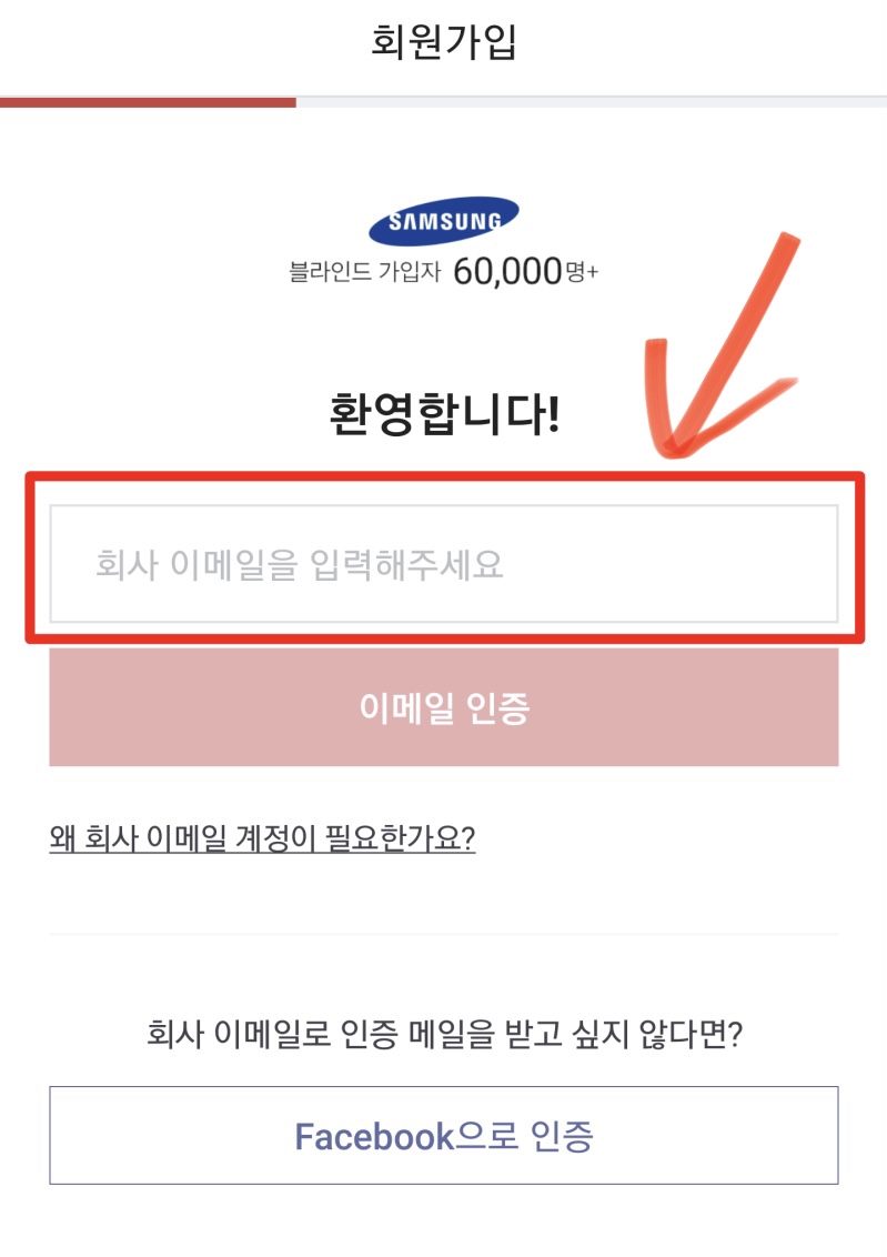 이렇게 블라인드 앱을 설치한 다음 회사 이메일을 입력하면