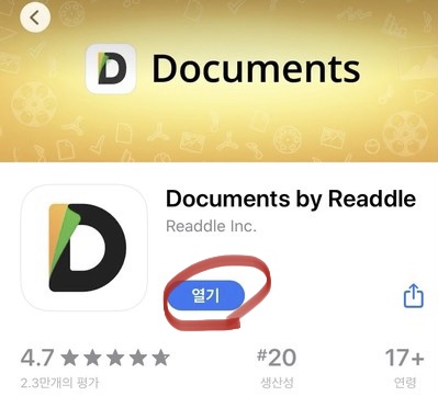 (1) 우선 document앱을 앱스토어에서 다운로드 받아서 설치하여 실행한다.