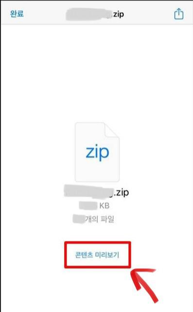 압축 파일 zip을 입수한 다음 아이폰, 아이패드 기본앱에서 열면 아래와 같은 화면이 나타난다.