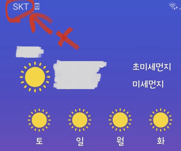 우선 기본적으로 스마트폰은 아래 이미지와 같이 상단 인디케이터 영역에 통신사가 표시된다. 이 부분에 나타나는 아이콘들의 배치 등을 변경 수정 삭제가 가능한 기능이며 삼성 갤럭시에서 가능한 기능이다.