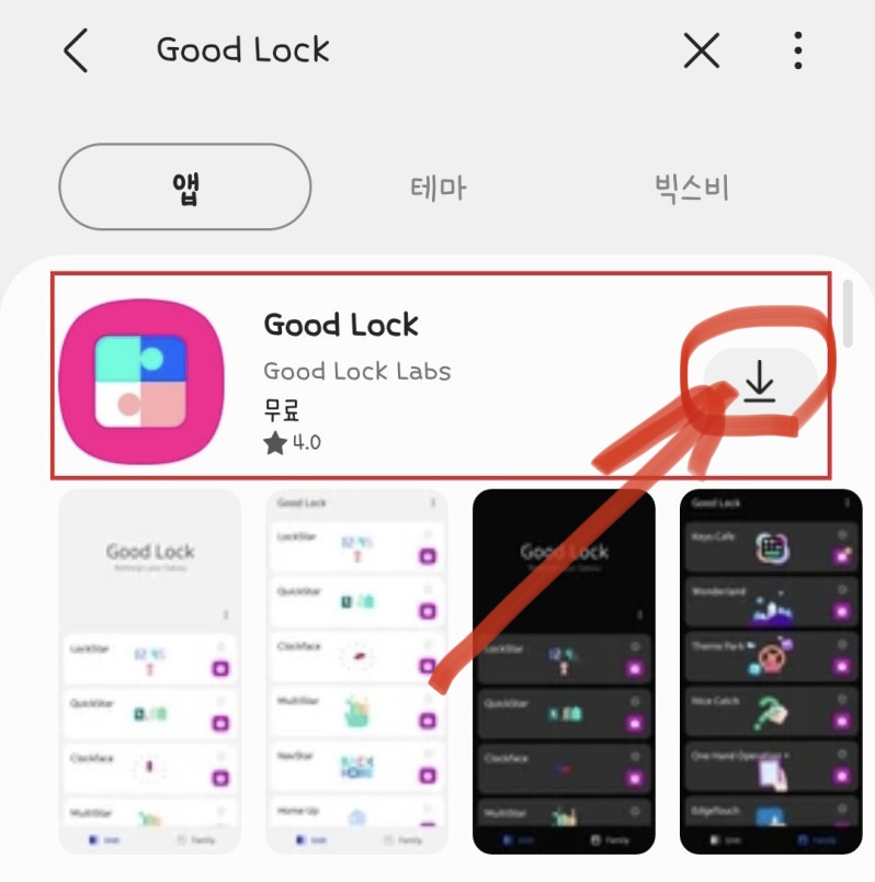 1. 우선 갤럭시 스토어에 접속한 다음 굿락(Good Lock)을 아래와 같이 다운로드하여 설치한다.