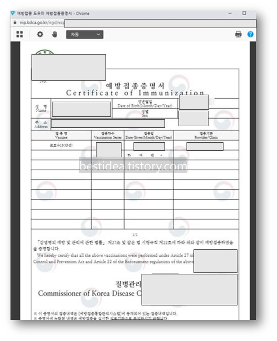 백신 예방접종증명서 발급 출력 방법 - 코로나 백신 종이 증명서 등