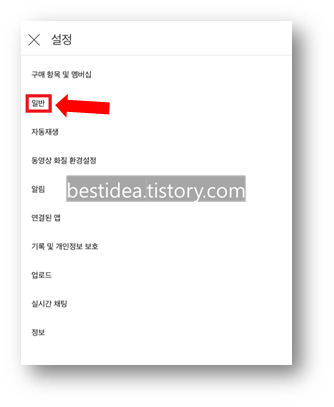 3. 설정화면에서 다시 구매 항목 및 멤버십 항목에 있는 "일반"을 눌러준다.