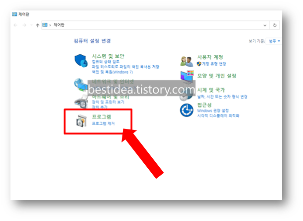 2. 제어판 내 컴퓨터 설정 변경 화면에서 "프로그램" - 프로그램 제거 항목을 선택한다.