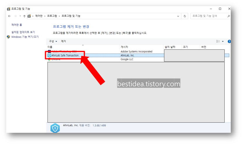 우선 AhnLab Safe Transaction(안랩 세이프 트랜잭션) 삭제 방법이다. 삭제는 실은 일반적인 프로그램 삭제 방법과 크게 다르지 않다.