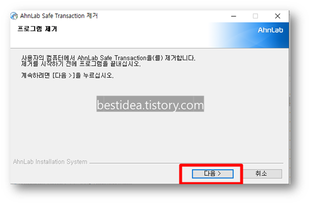 AhnLab Safe Transaction 삭제 방법
