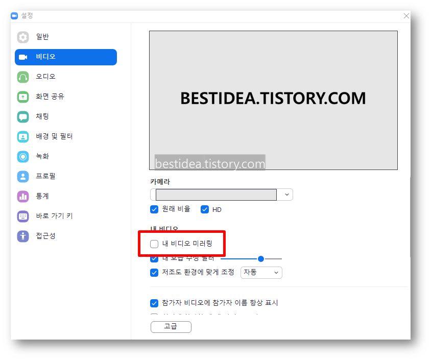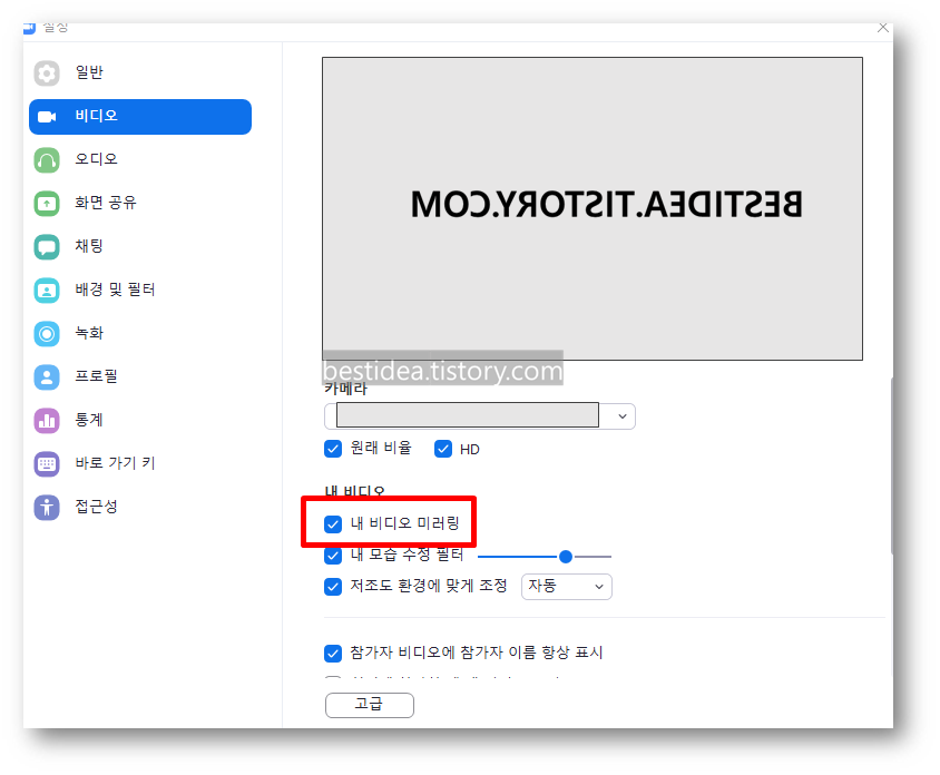 2. 줌 zoom 카메라 좌우반전 설정, 미러링 설정 방법