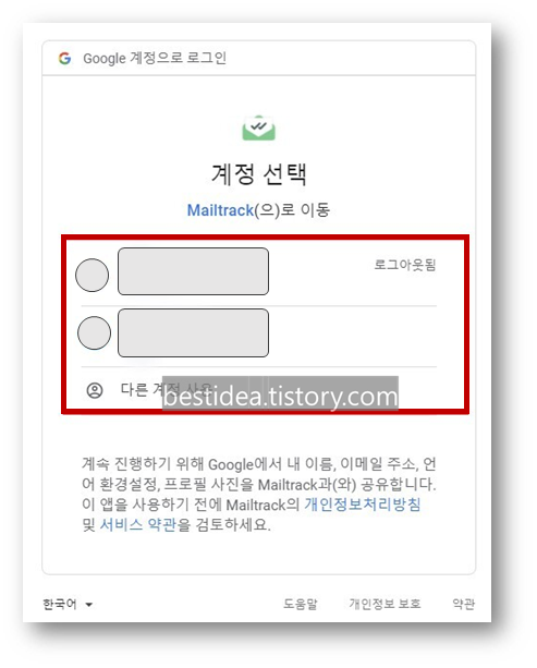 5. 그 다음 연결할 계정이 뜨는데 관련 계정에 아래와 같이 선택해주면 연결이 된다.