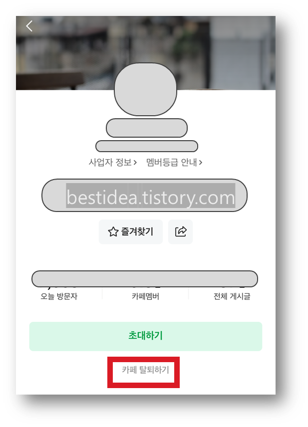 해당 팝업창에서 "확인"을 누르면 해당 카페에 탈퇴할 수 있다.