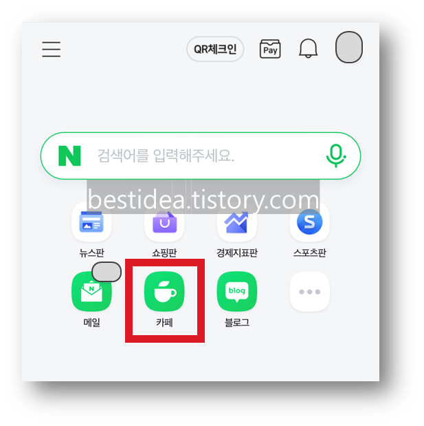 1) 우선 네이버 홈화면에서 카페 버튼을 선택한다.