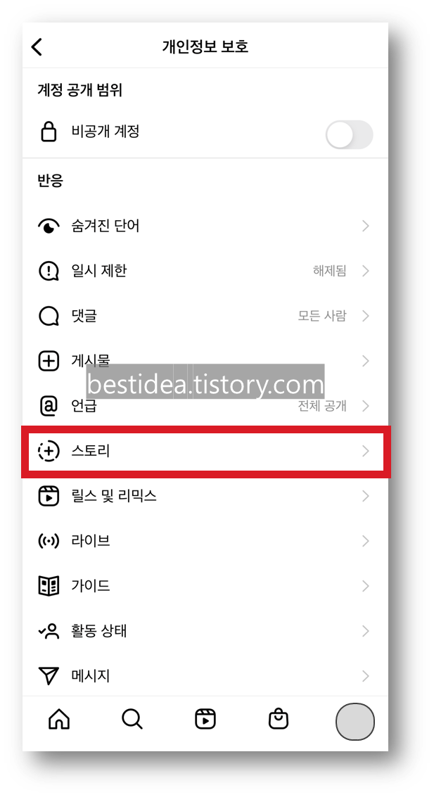 인스타 스토리 숨기기 및 인스타 스토리 숨기기 해제 방법