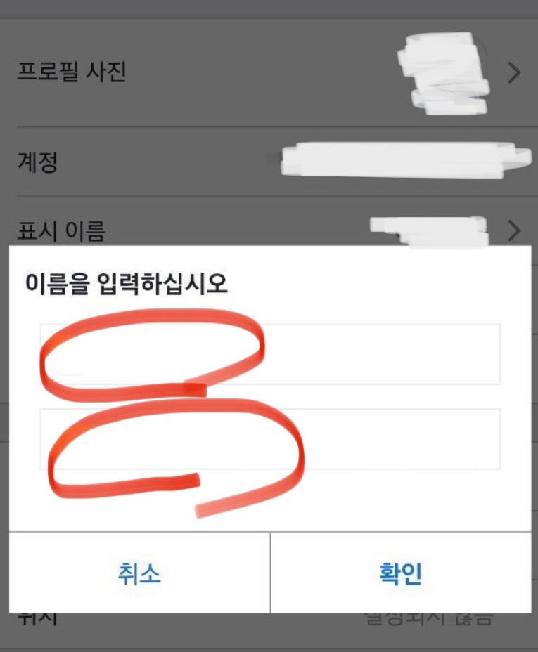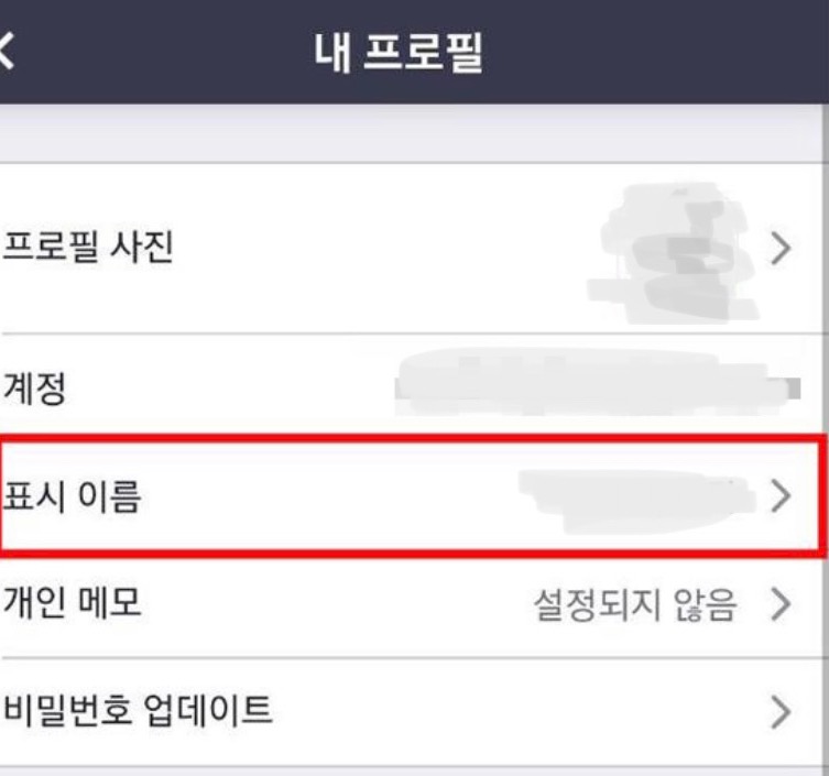 또한 "표시이름 - 닉네임" 바꾸기 위해서는 표시이름을 누르면 된다.