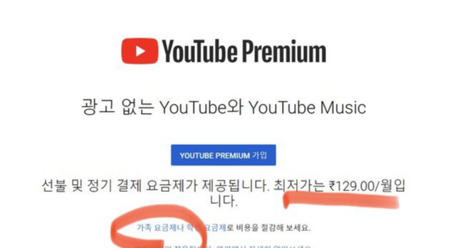이를 인도 유튜브 프리미엄 요금제로 가입을 하면 약 2000원/월이고,
