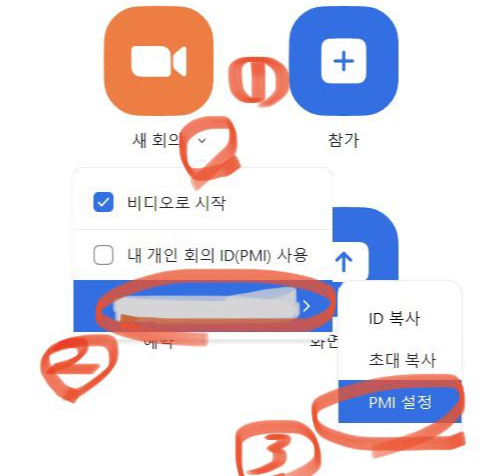 개인 pmi를 통한 회의의 경우 이 비밀번호-비번으로 설정되어 계속 사용이 가능해진다.