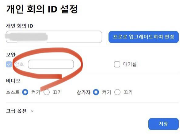 위와 같은 방법으로 줌 회의 비번, 암호 변경이 가능한데