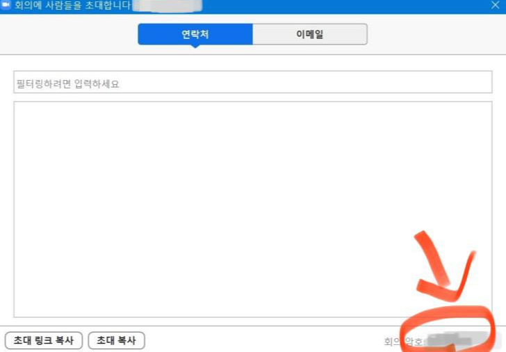아래와 같이 회의에 참가자를 초대하고자 할 때 우측하단 "회의암호" 부분에 암호가 나타난다.