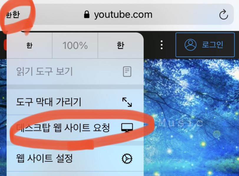 아래와 같이 아이폰의 경우 사파리를 이용해서 유튜브에 접속하면
